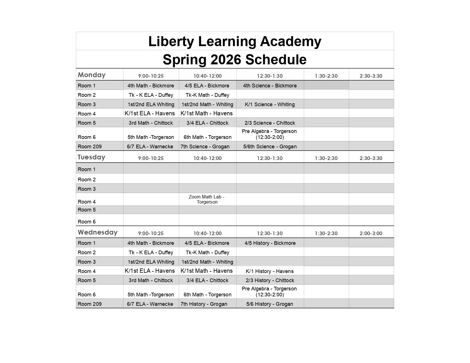 Class schedule and offerings may need to be adjusted slightly depending on enrollment.